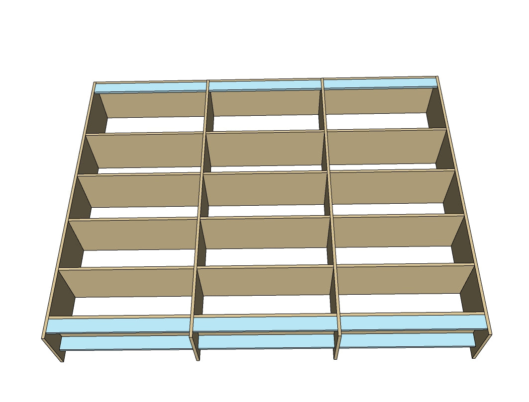 Your shelf help pieces arrive precut with a finished front edge. All Shelf Help projects - no matter the size - follow the same assembly pattern - shelves attached to dividers/sides. We recommend using a pocket hole jig and screws to build the carcass of your project.
